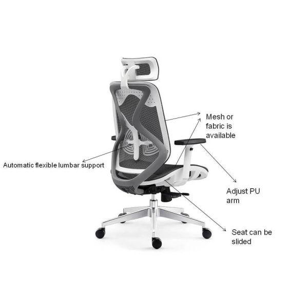Our high-back computer chair is ergonomically shaped with built-in adjustable lumbar support
